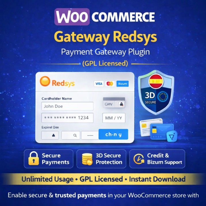 Accept secure online payments in WooCommerce using WooCommerce Gateway Redsys. Perfect payment gateway integration for Spanish payment systems including cards and Bizum.
