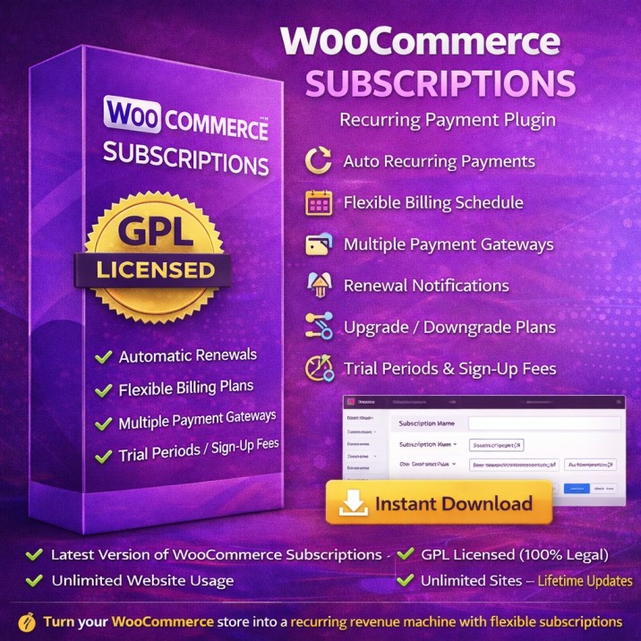 ✔️ Latest Version of WooCommerce Subscriptions (ZIP)